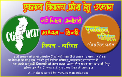 एकलव्य विद्यालय में प्रवेश हेतु अभ्यास प्रश्न गणित 25 अंक cg exam quiz 2020-21